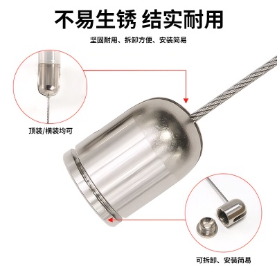 可伸缩不锈钢钢丝绳锁线器吸顶吊灯调节吊线固定天花卡扣灯饰配件