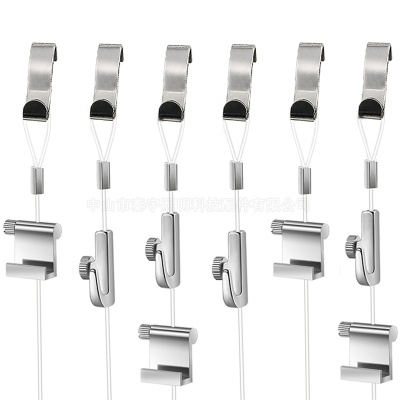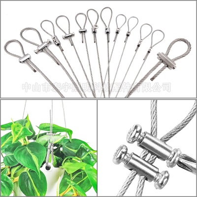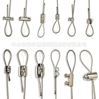 可调节不锈钢钢丝绳吊灯专用移动挂画画框轨道挂钩灯饰锁线器配件