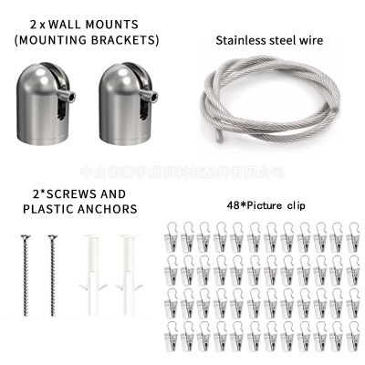 方形轨道挂画器钢丝绳线导滑轨挂钩画展卡槽锁线器可调节挂画吊码