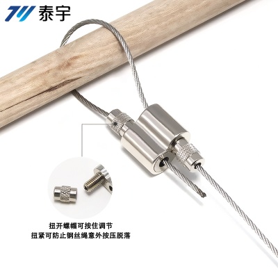供应钢丝绳锁线器可调节304不锈钢丝绳晾衣架挂画自锁双孔卡线器