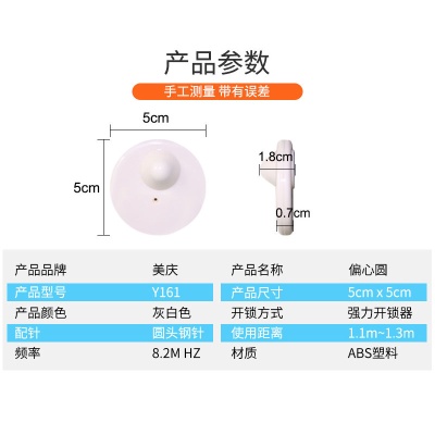 美庆超市防盗门射频防盗扣安检门报警器硬标签圆形服装防盗扣磁扣