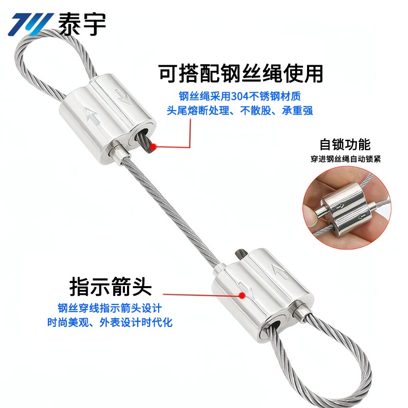 商品名称:钢丝绳双向锁线器吊码可调节led灯具吊绳固定面板灯五金灯饰配件