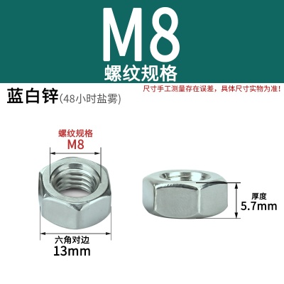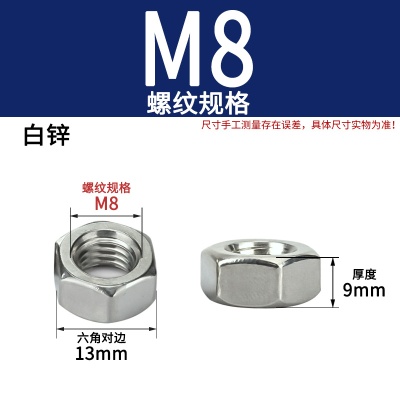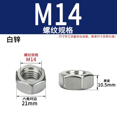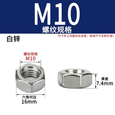 商品名称:六角螺母粗牙铁碳钢201不锈钢304 316白锌镀镍盐雾加大厚机械