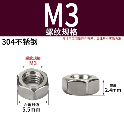 六角螺母(粗牙)M3加厚白锌
