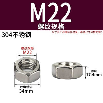 304不锈钢六角螺母(粗牙)M22