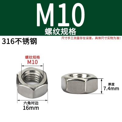316不锈钢六角螺母(粗牙)M10