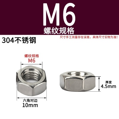 316不锈钢六角螺母(粗牙)M6