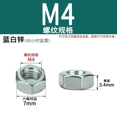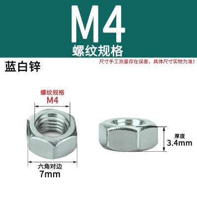 六角螺母(粗牙)M4白锌