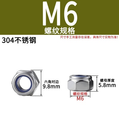 304不锈钢防松螺母M6