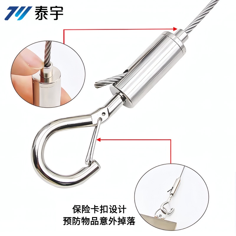 商品名称:钢丝绳保险钩锁线器加大加粗灯饰锁线钩防坠落挂钩自锁弹簧钩锁扣