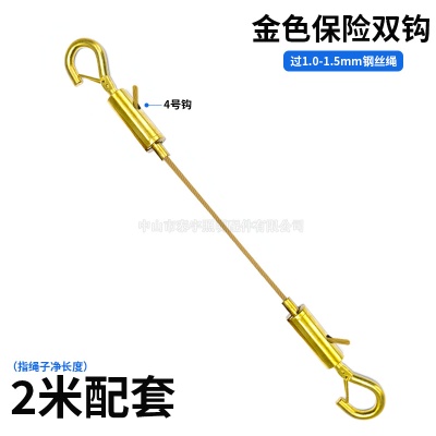商品名称:钢丝绳保险钩金色吊钩吊灯镀锌弹簧扣可调节钢丝绳锁线钩灯饰配件