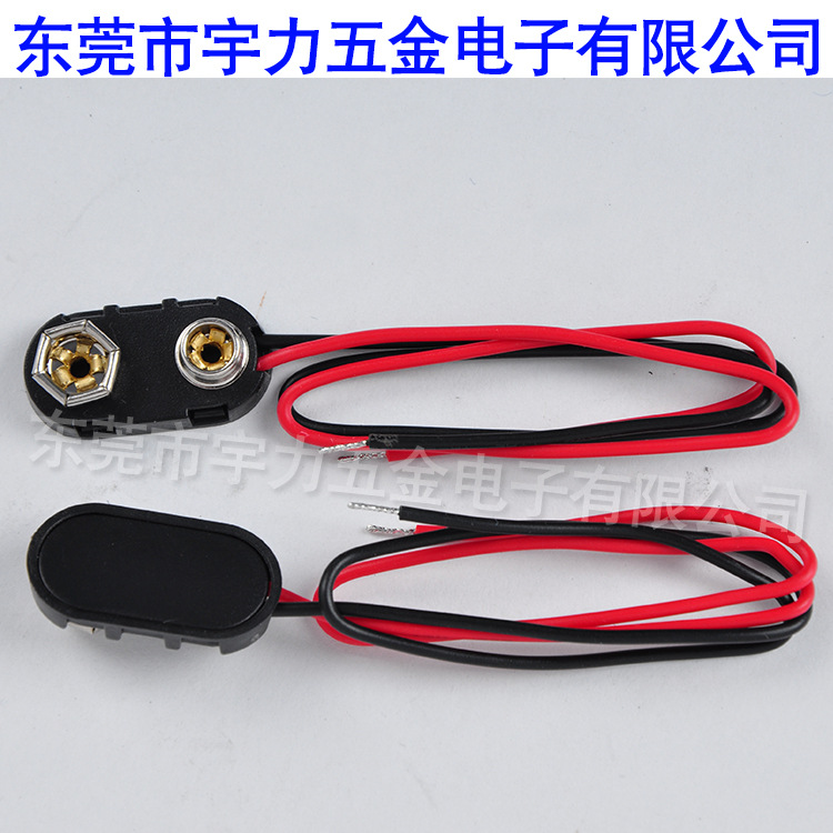 I型9v电池硬扣 塑胶壳电池座可带端子接口长度15CM一字型9v电池夹