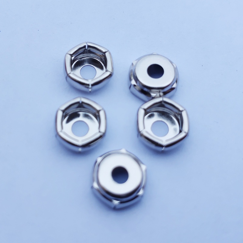 商品名称:9v电池配件正负极帽母扣B花开孔铆钉正极无孔a珠黄铜镀镍六角螺母