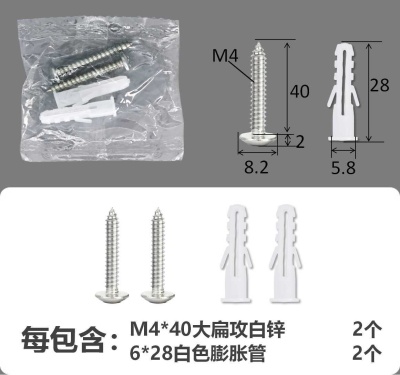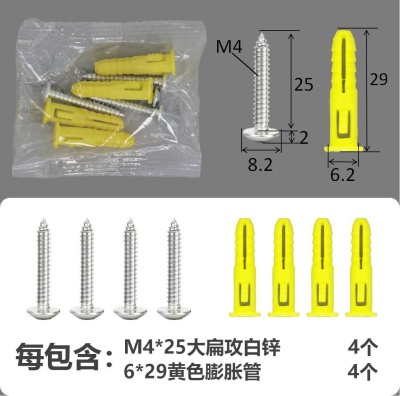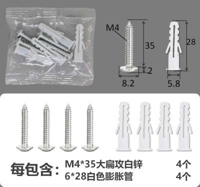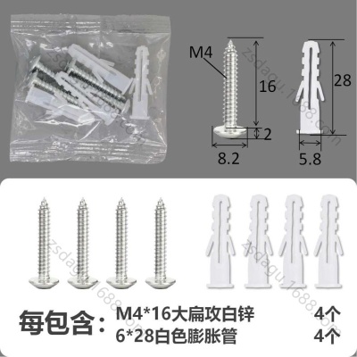 配件包大扁攻M4*16白锌白色膨胀管2+2件套