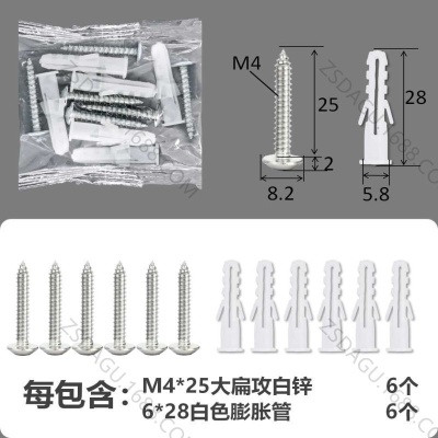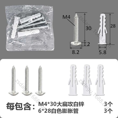 配件包大扁攻M4*16白锌白色膨胀管3+3件套