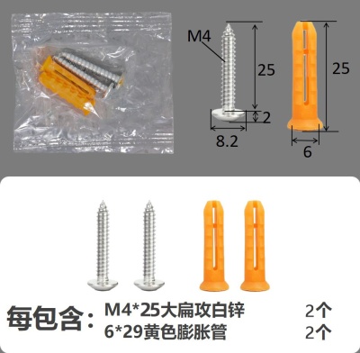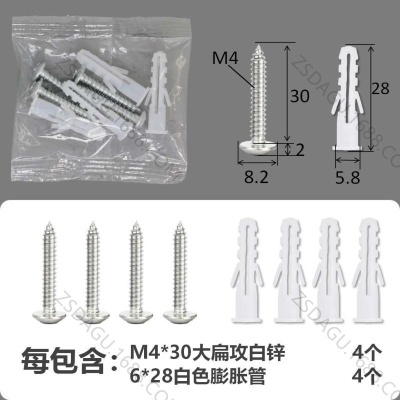 配件包大扁攻M4*20白锌白色膨胀管2+2件套