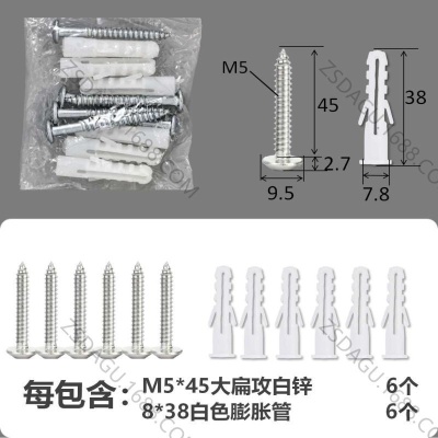 配件包大扁攻M5*45白锌白色膨胀管6+6件套