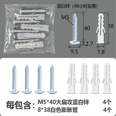 配件包大扁攻M5*40蓝白锌白色膨胀管4+4件套