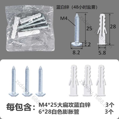 配件包大扁攻M4*20蓝白锌白色膨胀管3+3件套