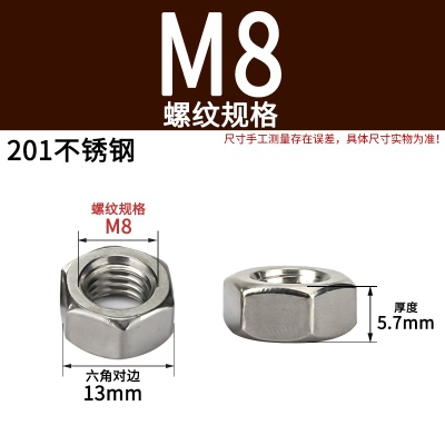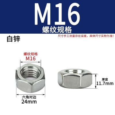 商品名称:六角螺母粗牙铁碳钢201不锈钢304 316白锌镀镍盐雾加大厚机械