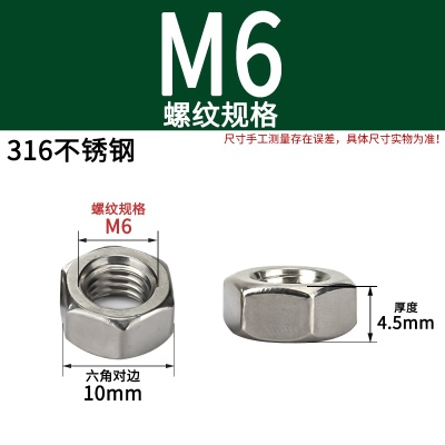 316不锈钢六角螺母(粗牙)M6