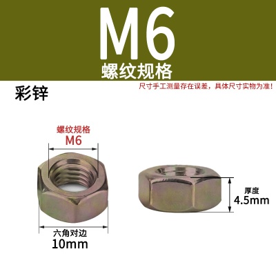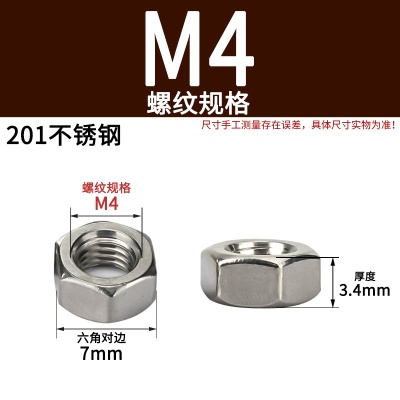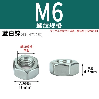 六角螺母(粗牙)M4加厚白锌