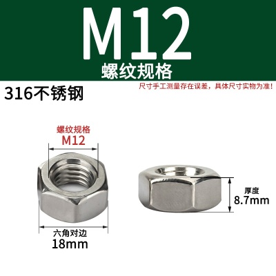 316不锈钢六角螺母(粗牙)M12