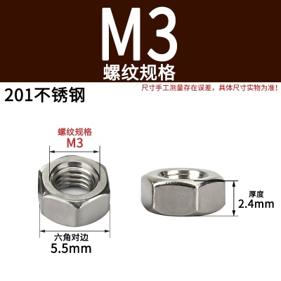 六角螺母(粗牙)M3加厚白锌